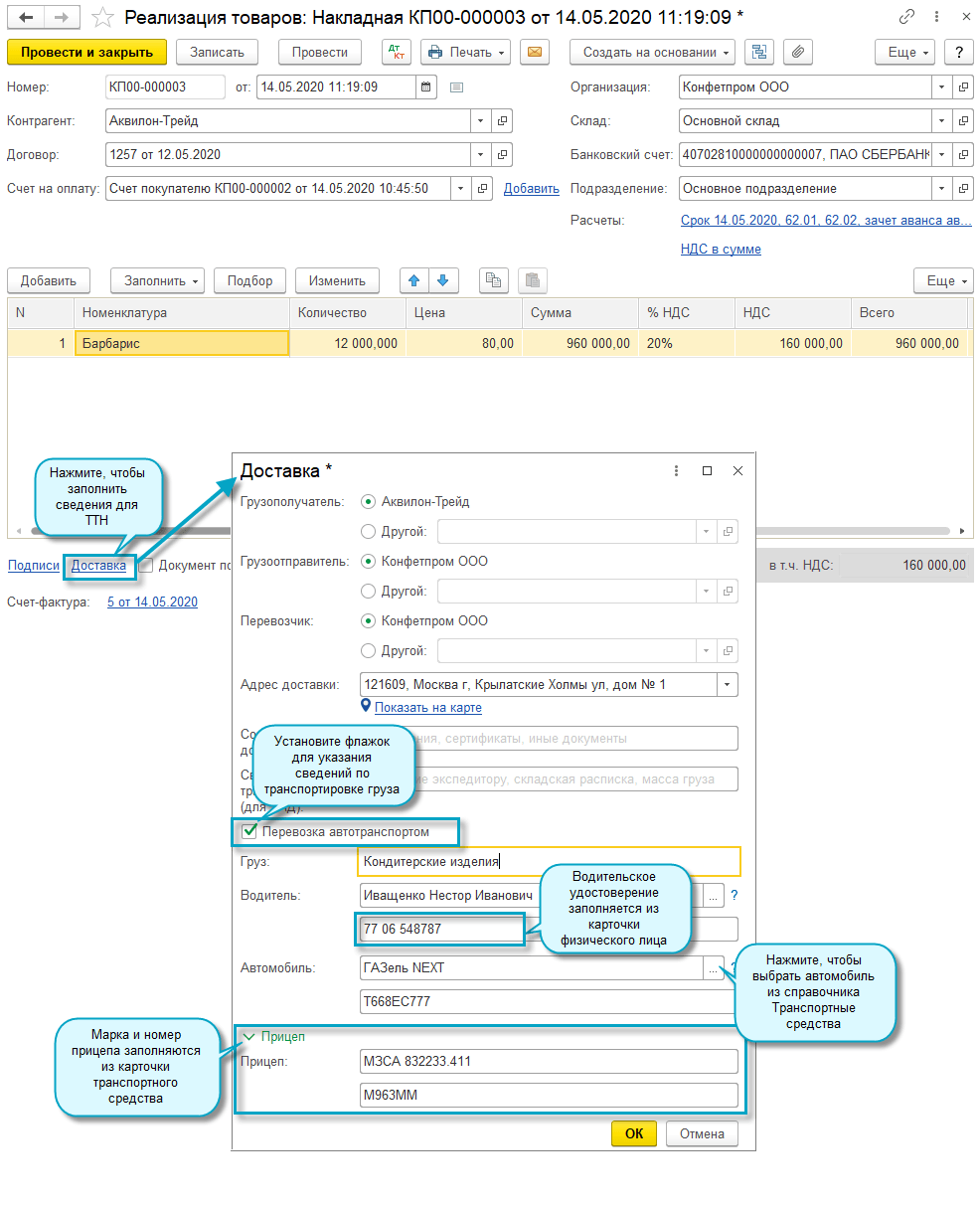 Добавлена возможность указать марку и гос. номер прицепа в карточке транспортного средства для вывода на печать в товарно-транспортной накладной (форма 1-Т).
