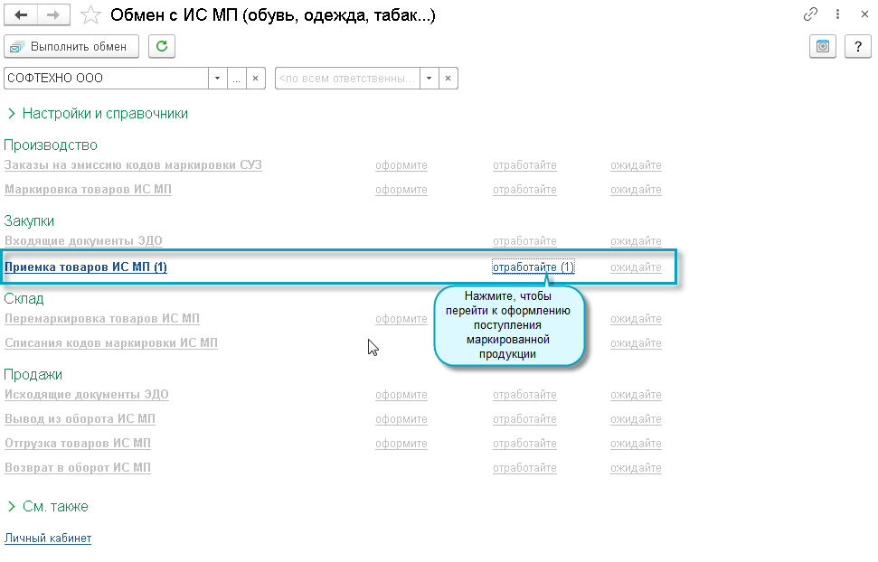Добавлена возможность поступления кодов маркировки с помощью прямого обмена между участниками, не использующими ЭДО.