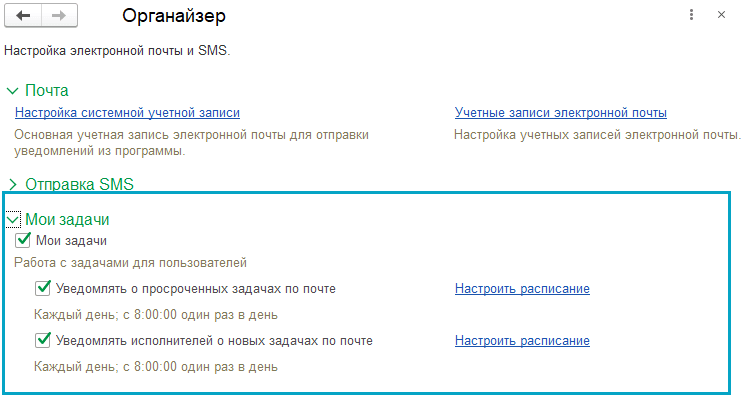 Добавлена возможность создавать напоминания себе и поручения другим пользователям. Например, чтобы не забыть подготовиться к совещанию или попросить сотрудника проверить корректировки за прошлый месяц достаточно сделать запись в журнал "Мои задачи", а также сделать следующую настройку: