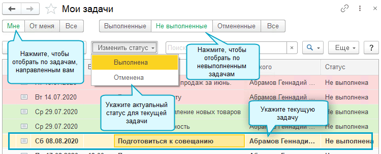 Контролируйте задачи, которые Вы направили другим сотрудникам.