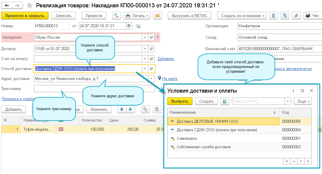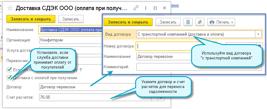 Добавлена возможность отражения услуг доставки товаров сторонними транспортным компаниями с получением оплаты от покупателей.