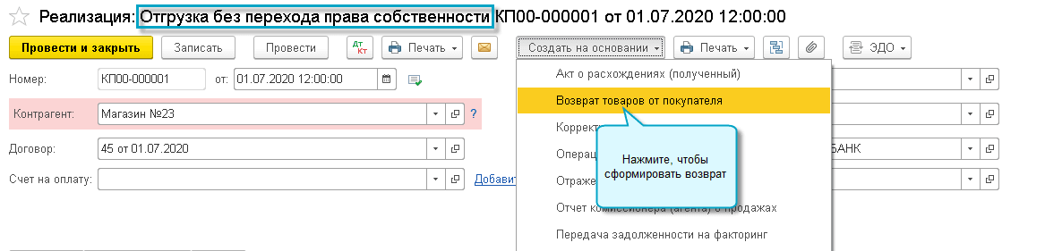 Добавлена возможность отразить возврат отгруженных товаров до момента перехода права собственности на них покупателю.