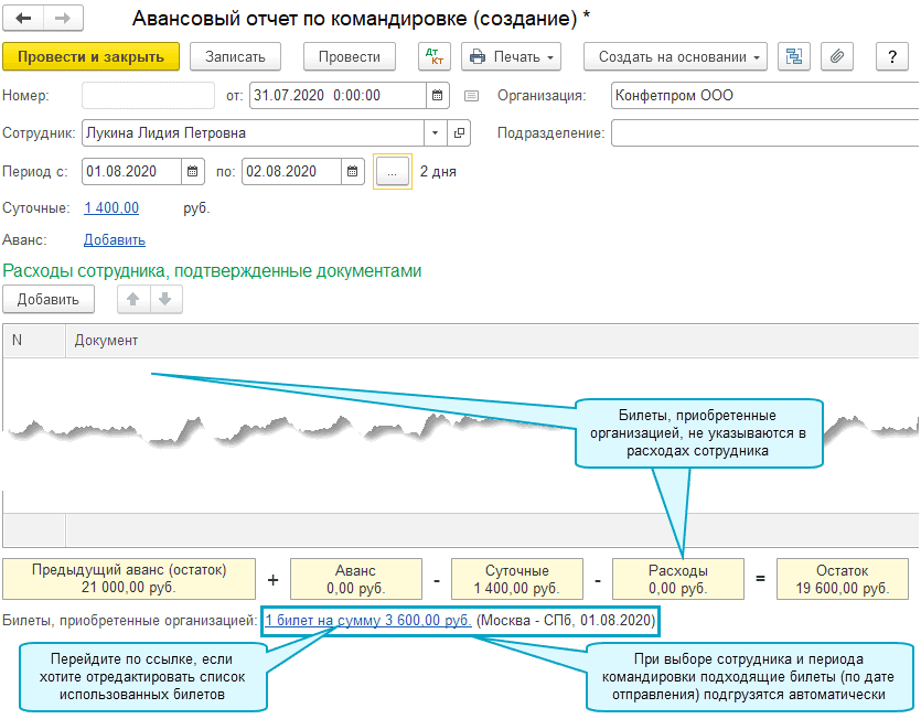 Чтобы списать в расходы стоимость использованных билетов, их необходимо указать в авансовом отчете по командировке: