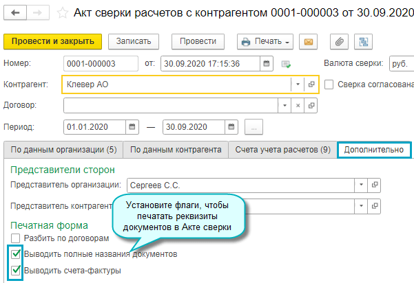 Акты сверки расчетов можно формировать с указанием реквизитов УПД, которым оформлена операция.