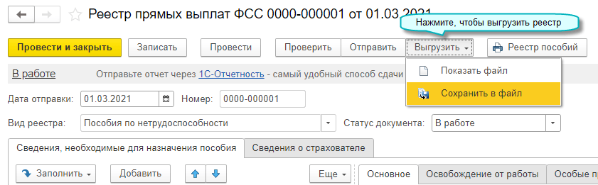 Добавлена возможность выгрузки реестра прямых выплат ФСС в формате 1.7.7. Формат применяется начиная с 15.12.2020.
