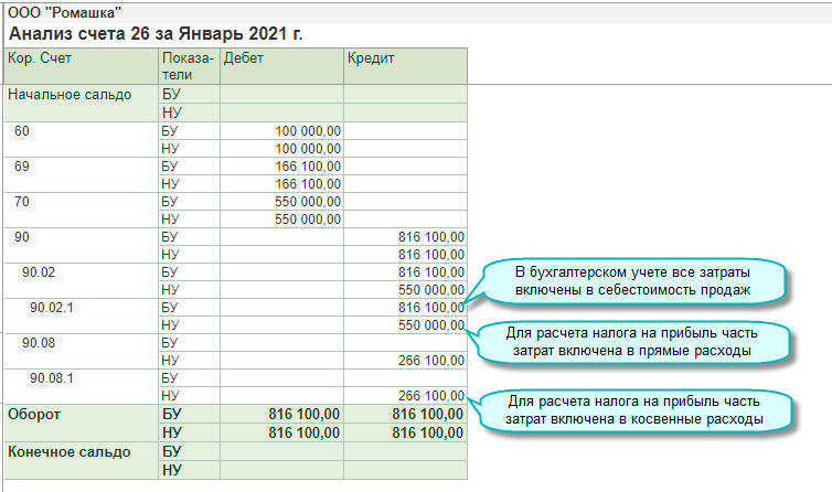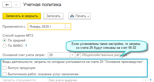 С 2021 года изменен порядок списания затрат для организаций, которые используют счет 26 "Общехозяйственные расходы" для учета всех затрат. В бухгалтерском учете затраты включаются в себестоимость продаж. Для расчета налога на прибыль затраты разделяются на прямые и косвенные исходя из перечня прямых расходов, заданного организацией в настройках по налогу на прибыль.