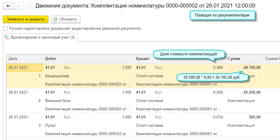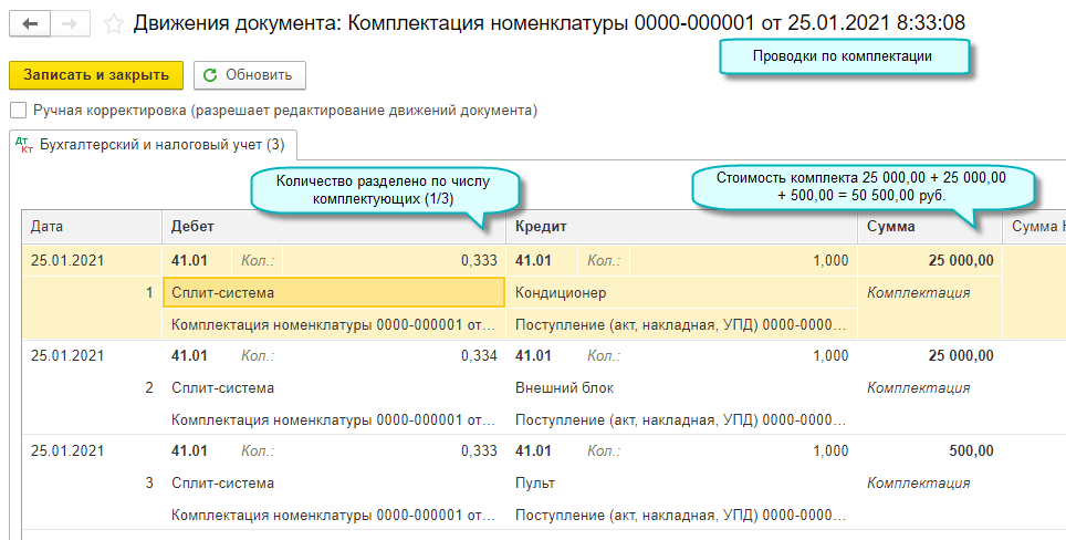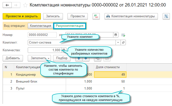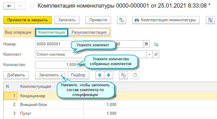 В простом интерфейсе добавлена возможность комплектации нескольких товаров или материалов в единый комплект. Также возможна обратная операция по разукомплектации.