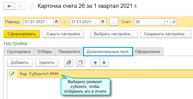Добавлена возможность вывода в карточке счета дополнительной информации по корреспондирующим счетам.