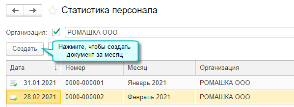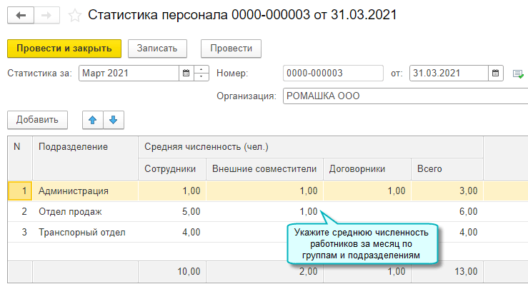 Полный интерфейс: меню "Зарплата и кадры - Кадры - Статистика персонала".