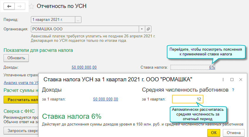 Добавлена возможность автоматического расчета средней численности для определения ставки налога УСН, когда учет расчетов по заработной плате и кадровый учет ведутся во внешней программе. Также рассчитывается среднесписочная численность при заполнении Справки-подтверждения основного вида деятельности.