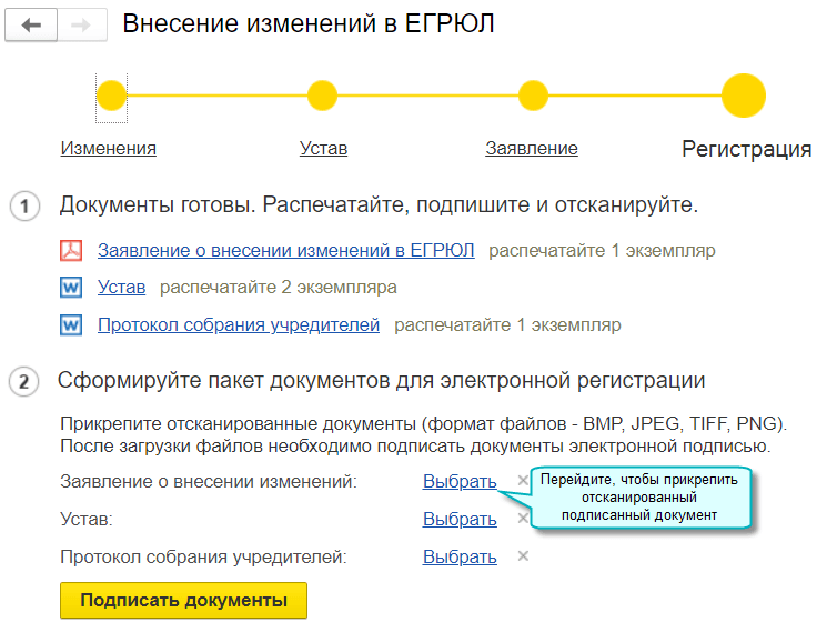 Простой интерфейс: меню "Настройки - Основное - Внесение изменение в ЕГРЮЛ".