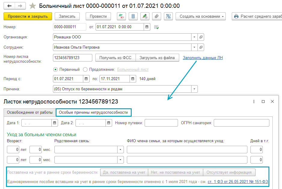 С 01.07.2021 отменена возможность регистрации данных для прямой выплаты единовременного пособия при постановке на учет в ранние сроки беременности. Получить его смогут только женщины, у которых отпуск по беременности и родам начался до 01.07.2021 (Федеральный закон от 26.05.2021 № 151-ФЗ).