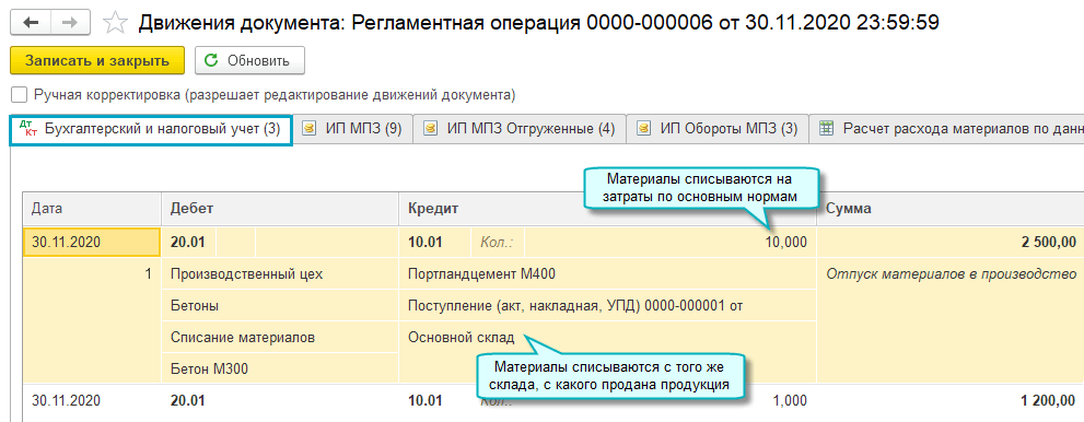 Добавлена возможность автоматического учета выпуска продукции и расхода материалов по данным продаж. Теперь не требуется вручную вести учет выпуска продукции и расхода материалов, если произведенная продукция сразу продается, нет остатков продукции на складе, и материалы на производство расходуются по нормам. Выпуск продукции отражается по мере её продажи покупателю, а расход материалов – последним днем месяца по нормам расхода при закрытии месяца.