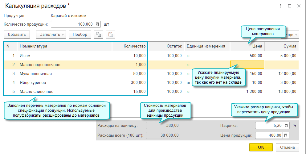 Добавлена возможность предварительной оценки расходов на материалы для производства продукции по заказу. Также можно проверить наличие на складе материалов, необходимых для производства продукции.