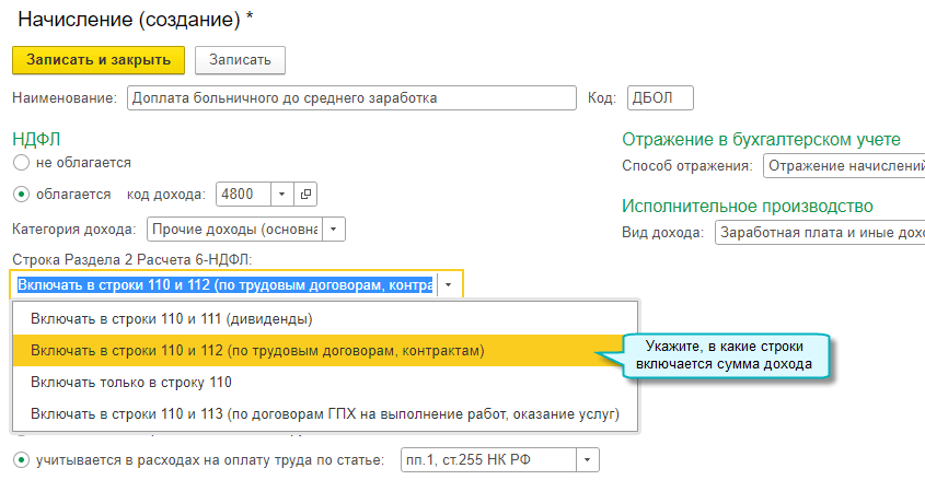 Добавлена возможность для начислений указать, в какую строку Раздела 2 Расчета 6-НДФЛ включаются доходы по ним. Указать строку также можно в Операции учета НДФЛ.