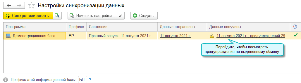 Списки предупреждений по синхронизации данных группированы по каждому обмену. Теперь можно быстро оценить состояние конкретной синхронизации и обработать предупреждения по ней.