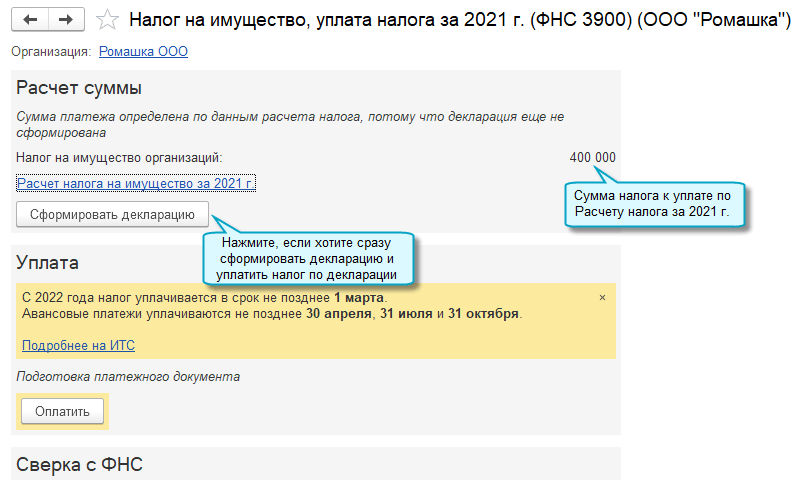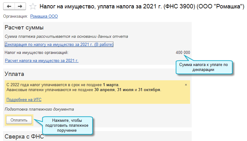 Изменен порядок определения срока уплаты налога на имущество в задачах организации. Срок уплаты налога и авансовых платежей с 2022 года устанавливаются Налоговым кодексом РФ, а не региональными законами. При этом авансовые платежи уплачиваются, если они не отменены региональным законом (Федеральный закон от 02.07.2021 № 305-ФЗ).