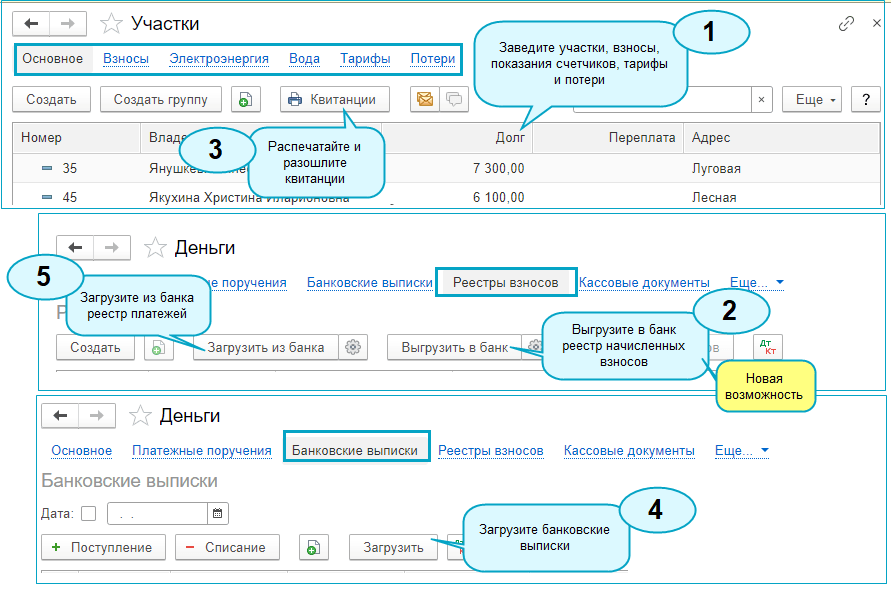 Добавлена возможность выгрузки реестра начисленных взносов в банк для тех СНТ, которые заключили договор с банком на прием платежей от физических лиц.