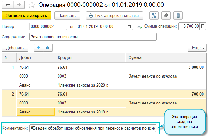 Для сохранения данных по распределению авансовых платежей прошлых периодов при обновлении созданы ручные операции