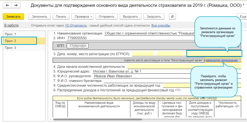 Добавлено автозаполнение места регистрации в справку-подтверждение основного вида деятельности. Для этого предварительно необходимо заполнить регистрирующий орган в справочнике организаций.