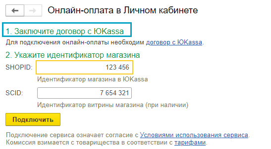 Простой интерфейс: меню "Настройки - Другие настройки - Сервис - Настройка 1С:Садовод. Личный кабинет - Онлайн-оплата в Личном кабинете".
