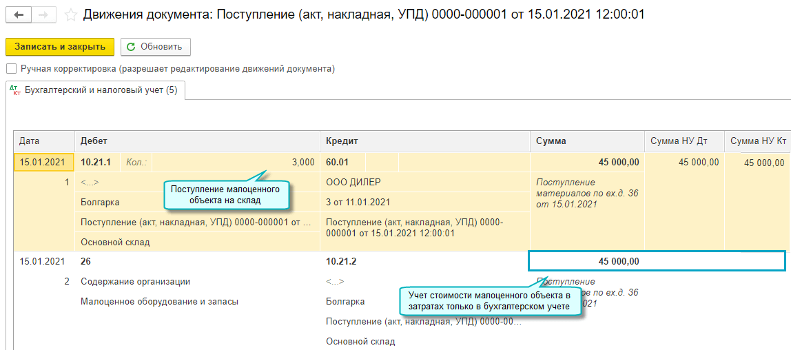 Подробнее об учете малоценных объектов см. в Статье.