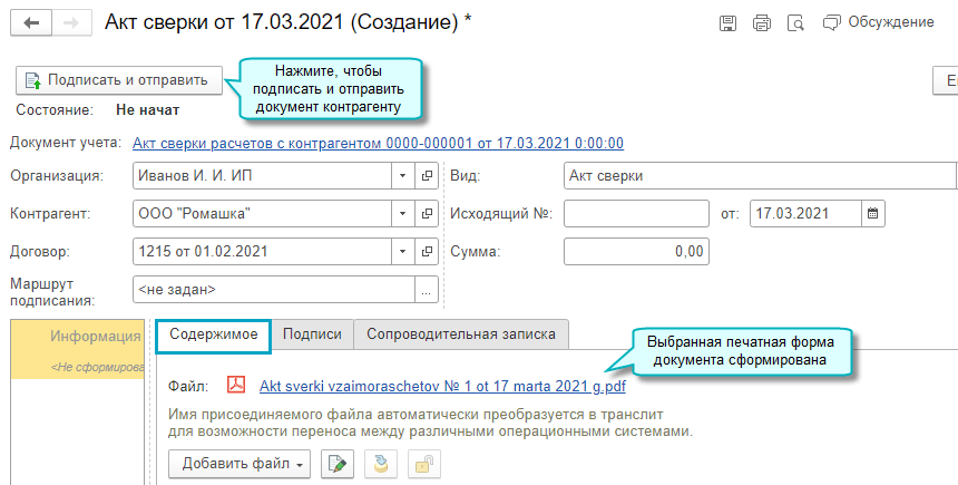 Добавлено представление штампов электронных подписей на актах сверки расчетов в формате PDF. Рекомендуется использовать версию 1С:Предприятие 8.3 не ниже 8.3.17.2127, 8.3.18.1267.