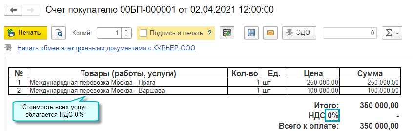 В печатную форму счета на оплату добавлена информация о ставке НДС, которая применяется при реализации. Таким образом, покупателям предоставляется вся информация, необходимая для оформления платежных поручений. При формировании итогов по счету указывается как сумма НДС, так и ставка. Если в счете на оплату указаны разные ставки НДС, то, как и прежде, в итоговой строке указывается только сумма НДС. Аналогичные изменения внесены в печатную форму "Акт об оказании услуг".