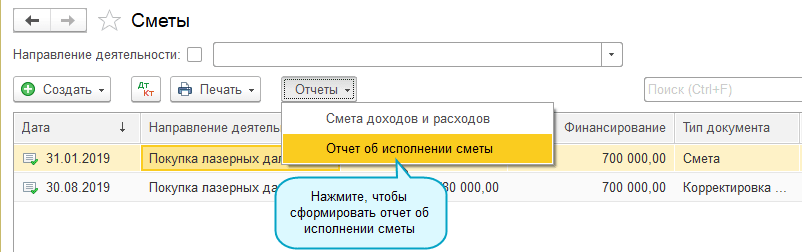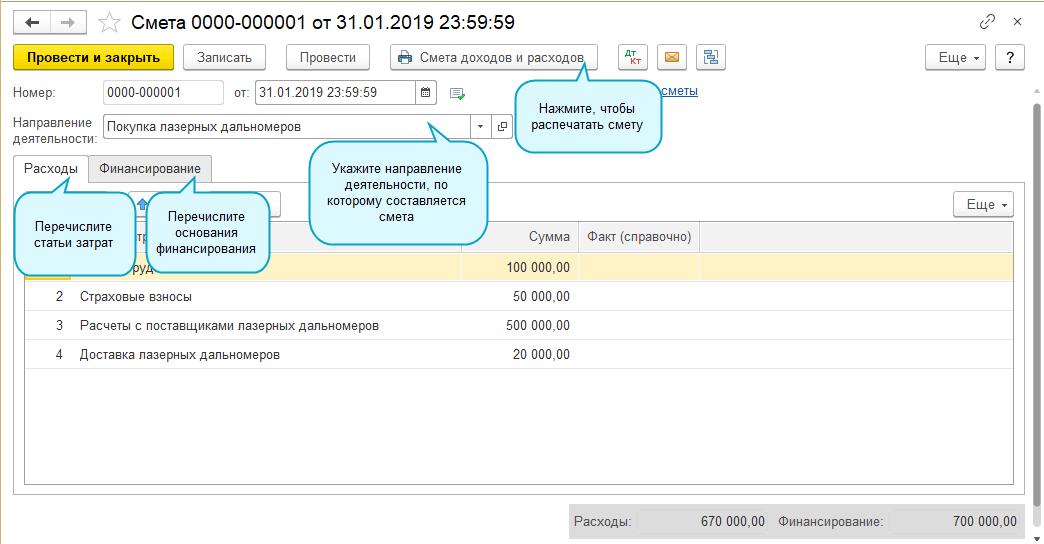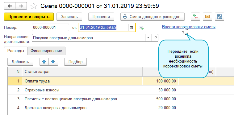 Добавлена возможность составления проектных смет и отчетов об их исполнении. Смета представляет собой перечень расходов и доходов, сгруппированных по направлениям деятельности и по основаниям финансирования. Предусмотрена корректировка сметы и ее закрытие.
