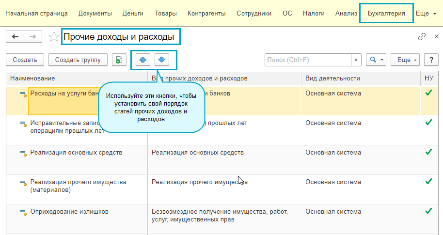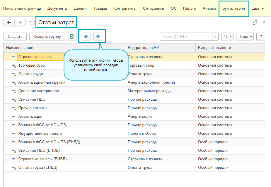 Добавлена возможность установки порядка следования элементов в списке для статей затрат и для статей прочих доходов и расходов.