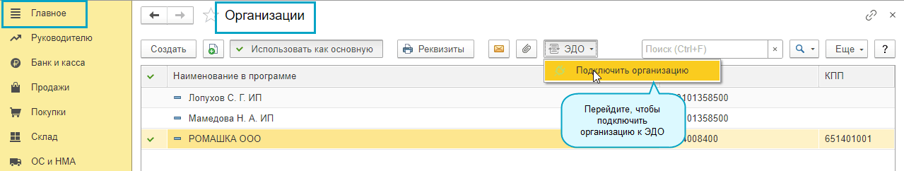 Добавлена возможность быстрой настройки обмена электронными документами с поставщиками и покупателями из справочника организаций и справочника контрагентов.