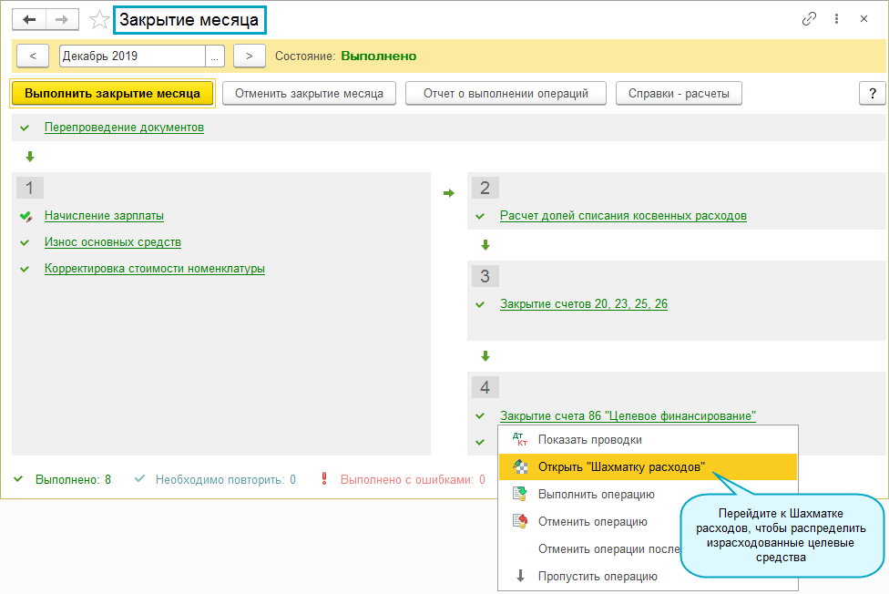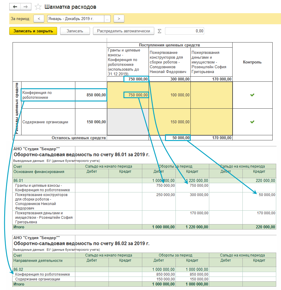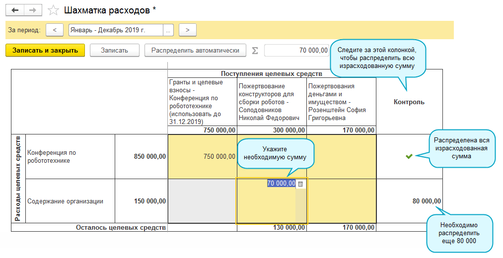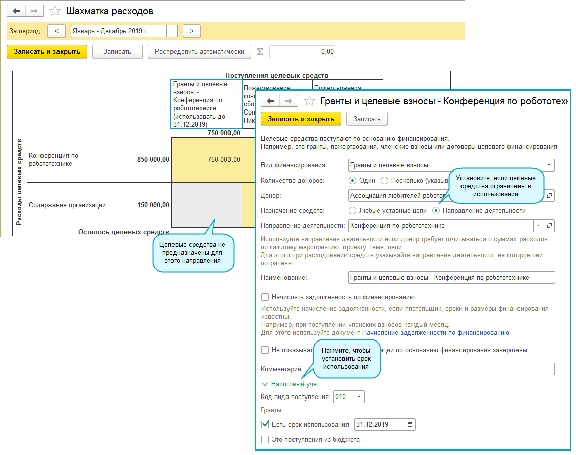 Упрощен механизм распределения средств целевого финансирования по направлениям деятельности. Чтобы распределить целевые средства используйте Шахматку расходов.