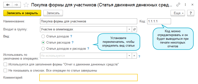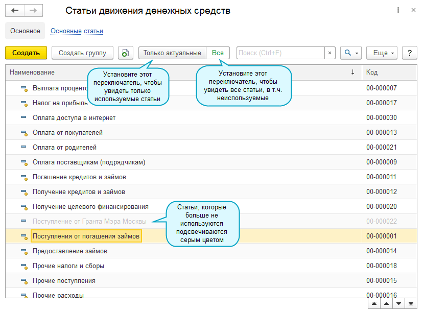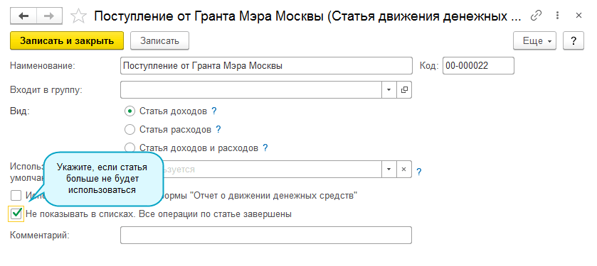 Если статья ДДС больше не используется, можно скрыть ее из общего списка.