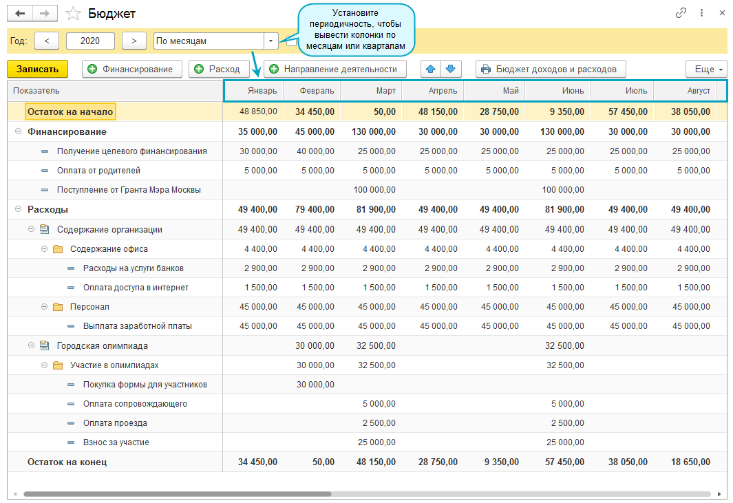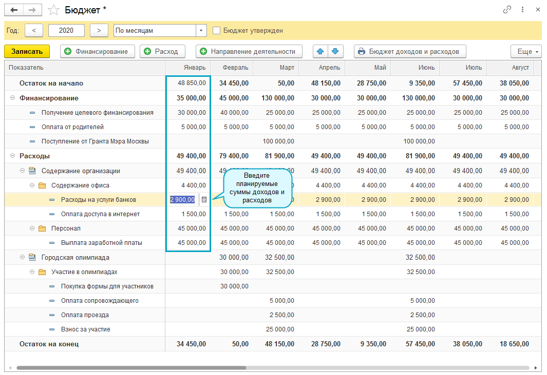 Введите в бюджет планируемые суммы.