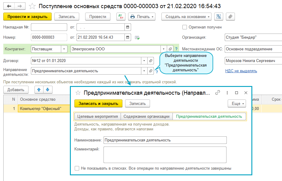 Добавлена возможность начислять амортизацию основных средств, которые используются для предпринимательской деятельности.