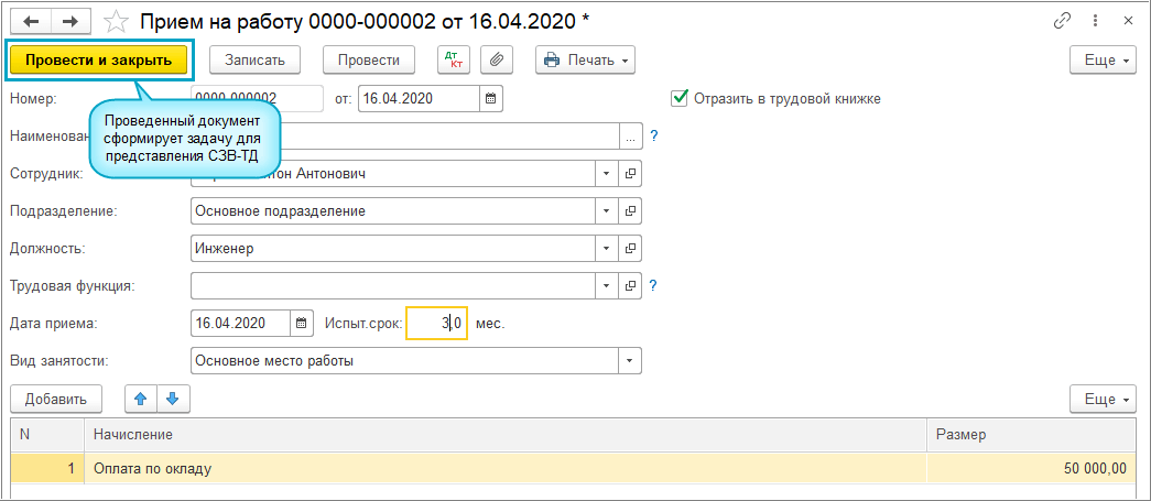 Начиная с 9 апреля и до конца 2020 года в случае приема на работу и увольнения сотрудника СЗВ-ТД представляется не позднее рабочего дня, следующего за днем издания приказа (распоряжения) (Постановление Правительства РФ от 08.04.2020 г. № 460).