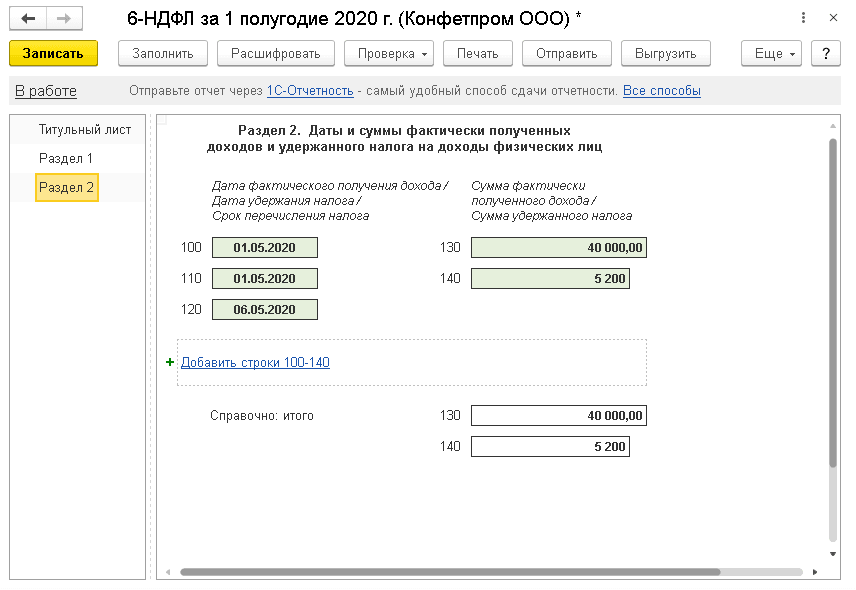Данные о полученных доходах и удержанном НДФЛ по договорам подряда отражаются в форме 6-НДФЛ. Чтобы сумма удержанного НДФЛ отразилась в 6-НДФЛ необходимо в документах выплаты указать ведомость, по которой выплачена сумма по договору подряда.