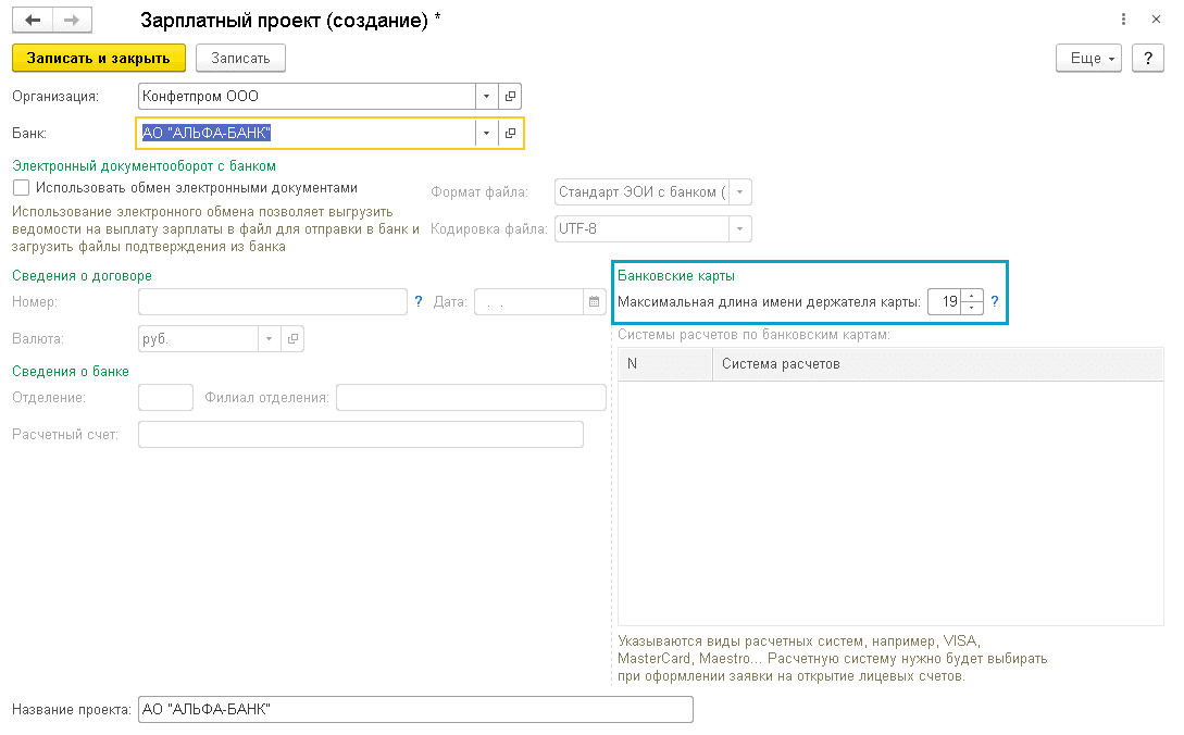 Добавлена возможность для зарплатного проекта указать предельную длину имени держателя карты для карт, выпускаемых в рамках зарплатных проектов.