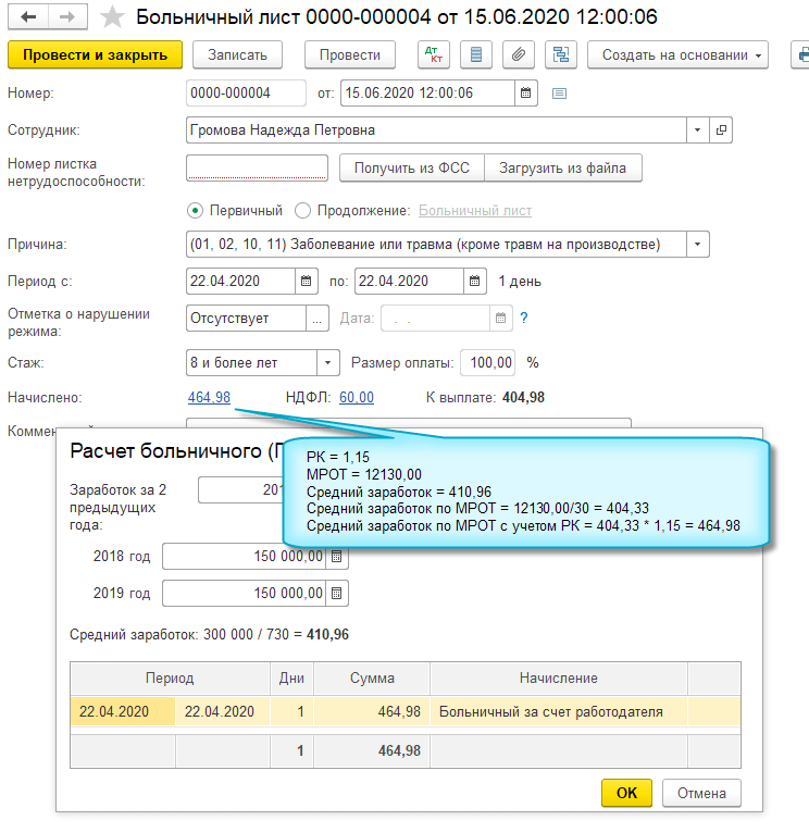 Реализован учет районного коэффициента при сравнении среднего заработка с МРОТ при расчете пособий, в соответствии с Федеральным законом от 08.06.2020 № 175-ФЗ.