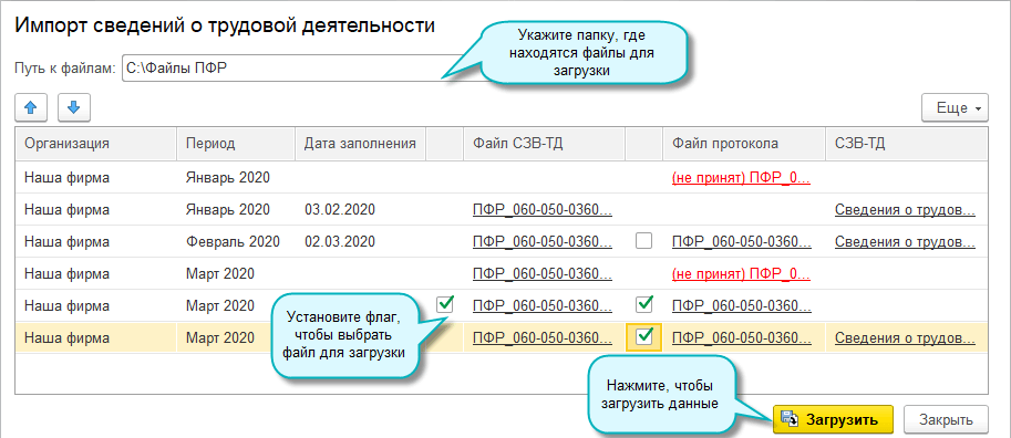 Добавлена возможность загрузки в программу данных из файлов СЗВ-ТД (в формате xml), ранее переданных в ПФР.