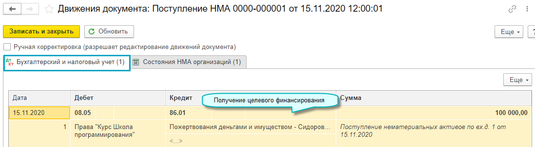 Добавлена возможность учета нематериальных активов (НМА), используемых в некоммерческой деятельности. Принятие на учет и выбытие таких НМА отражается с применением счета 83 "Добавочный капитал". Амортизация не начисляется (п.24 ПБУ 14/2007 "Учет нематериальных активов").