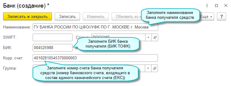 Добавлена возможность при перечислении денежных средств в бюджет указывать информацию о платеже по правилам, действующим с 01.10.2021 (Приказ Минфина России от 14.09.2020 № 199н).