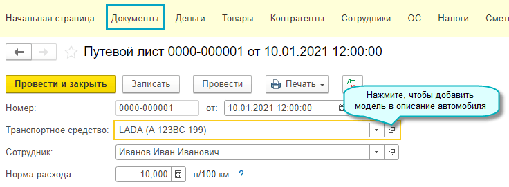 Добавлена возможность оформления путевого листа со сведениями о перевозке и модели автомобиля. Эти сведения должны указываться в путевом листе с 01.01.2021 по 01.01.2027 (Приказ Минтранса от 11.09.2020 № 368).