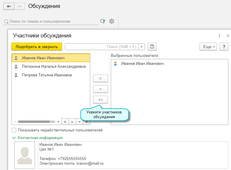 Добавлена возможность подбора участников обсуждения в системе взаимодействия.