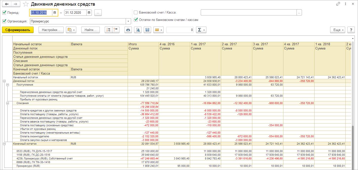 Данный отчет позволяет проводить анализ движений денежных средств.