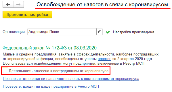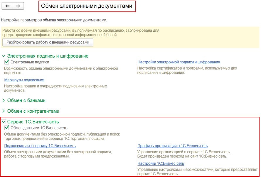 Если настройки заданы, то гиперссылке соответствует наименование Настройки 1C:EDI.