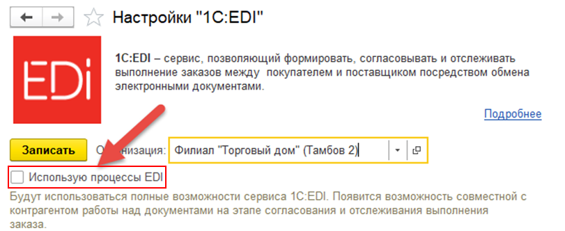 Отключить использование процессов EDI можно только через обращение в техническую поддержку.