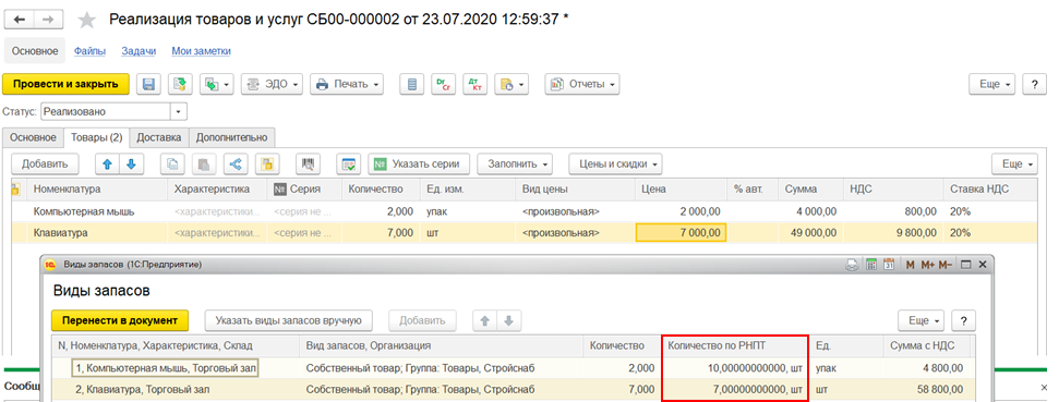 К примеру, документом Ввод начальных остатков собственных товаров на 31.12.2019 г. введены остатки товаров с прослеживаемыми кодами ТН ВЭД до начала учета прослеживаемых импортных товаров.