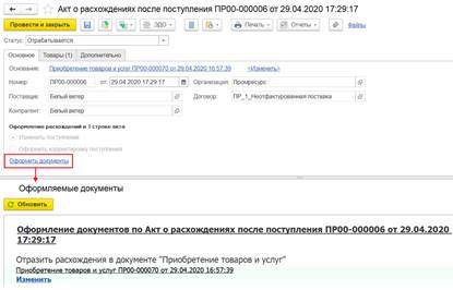 Новому документу по умолчанию присваивается состояние «Состояние оригинала неизвестно». Изменить состояние оригинала (или печатных форм) первичного документа можно и из формы документа по соответствующей гиперссылке.