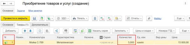 Заполнить порядковый номер можно номером строки товара или номером раздела (подменю команд Разное).